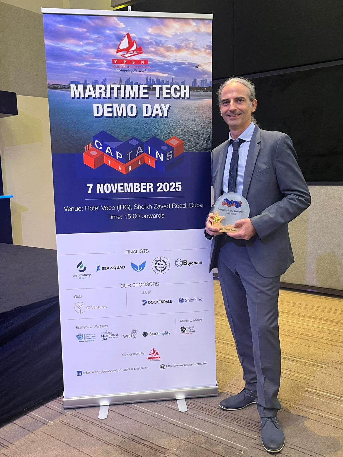 Congratulations to Dimitrios Chasampalis from Ensomatosys who delivered the winning pitch during the Captain’s Table Tech Demo Day in Dubai.
